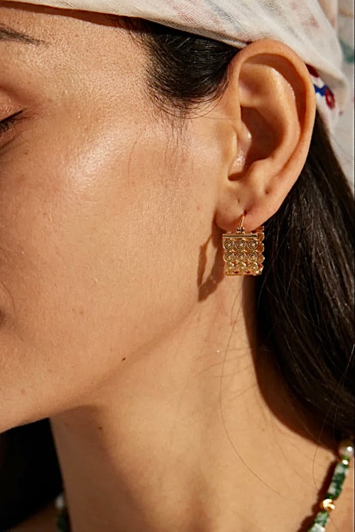 The Infinite Mosaic is a celebration of modern artistry and sophistication, perfect for the woman who appreciates subtle elegance. The intricate details and warm gold tones make these earrings a versatile accessory, suitable for both casual outings and formal events.