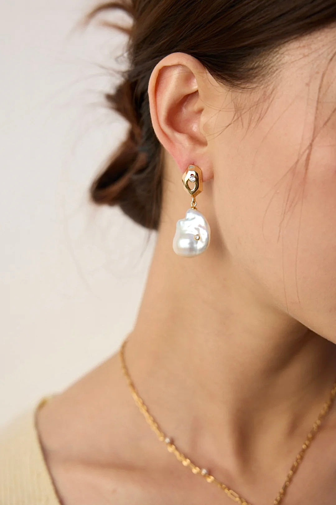Introducing the Reverie, a stunning pair of earrings that celebrate the unique beauty of baroque pearls. Each earring features a lustrous, organically shaped pearl that captures the light with its enchanting glow, suspended from a chic gold-plated accent.
